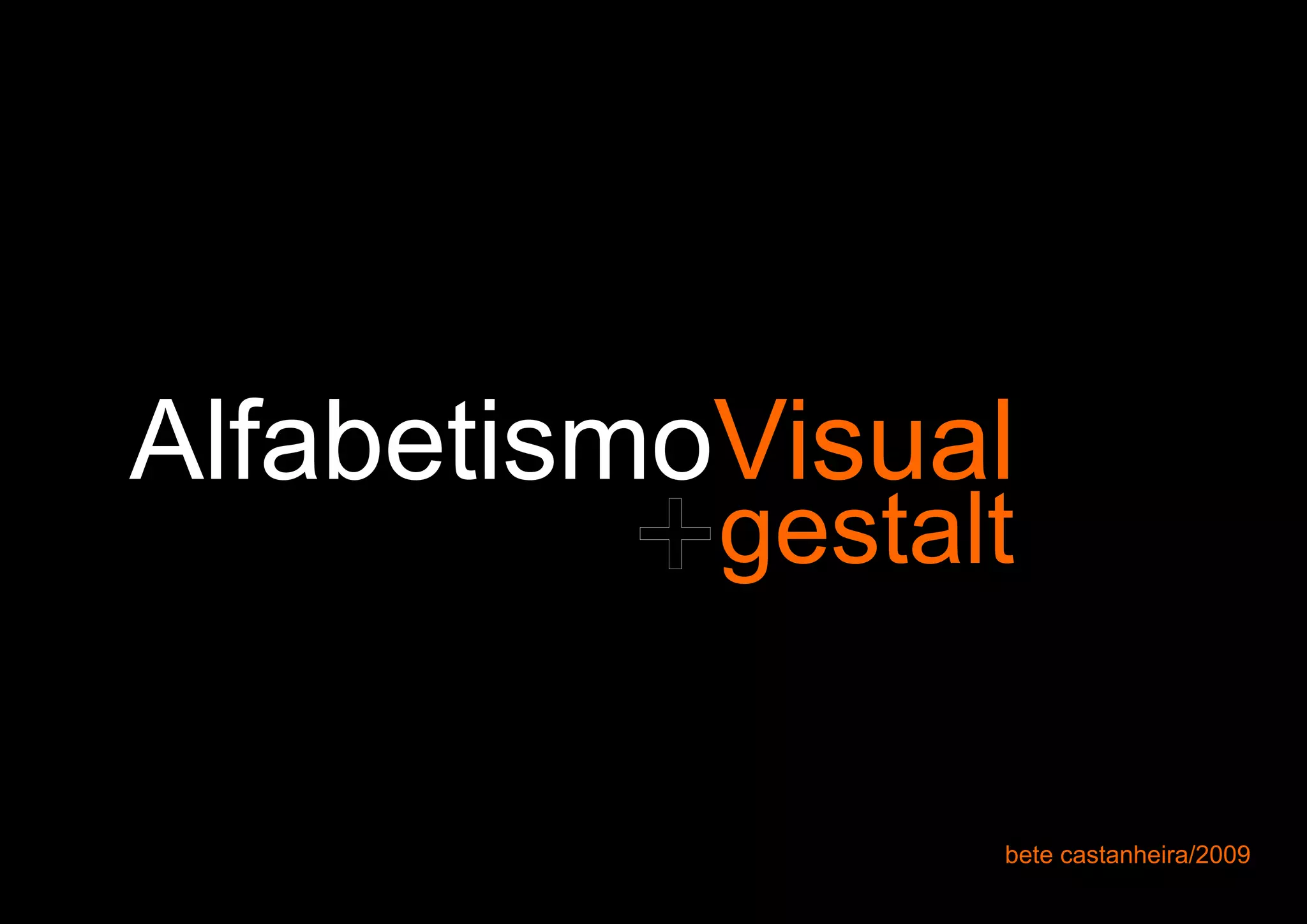 O documento discute o alfabetismo visual e a sintaxe visual. Apresenta os princípios da Gestalt, que estudam como o cérebro organiza visualmente os elementos em padrões. As leis da Gestalt, como unidade, proximidade e semelhança, influenciam como as pessoas percebem e interpretam mensagens visuais.