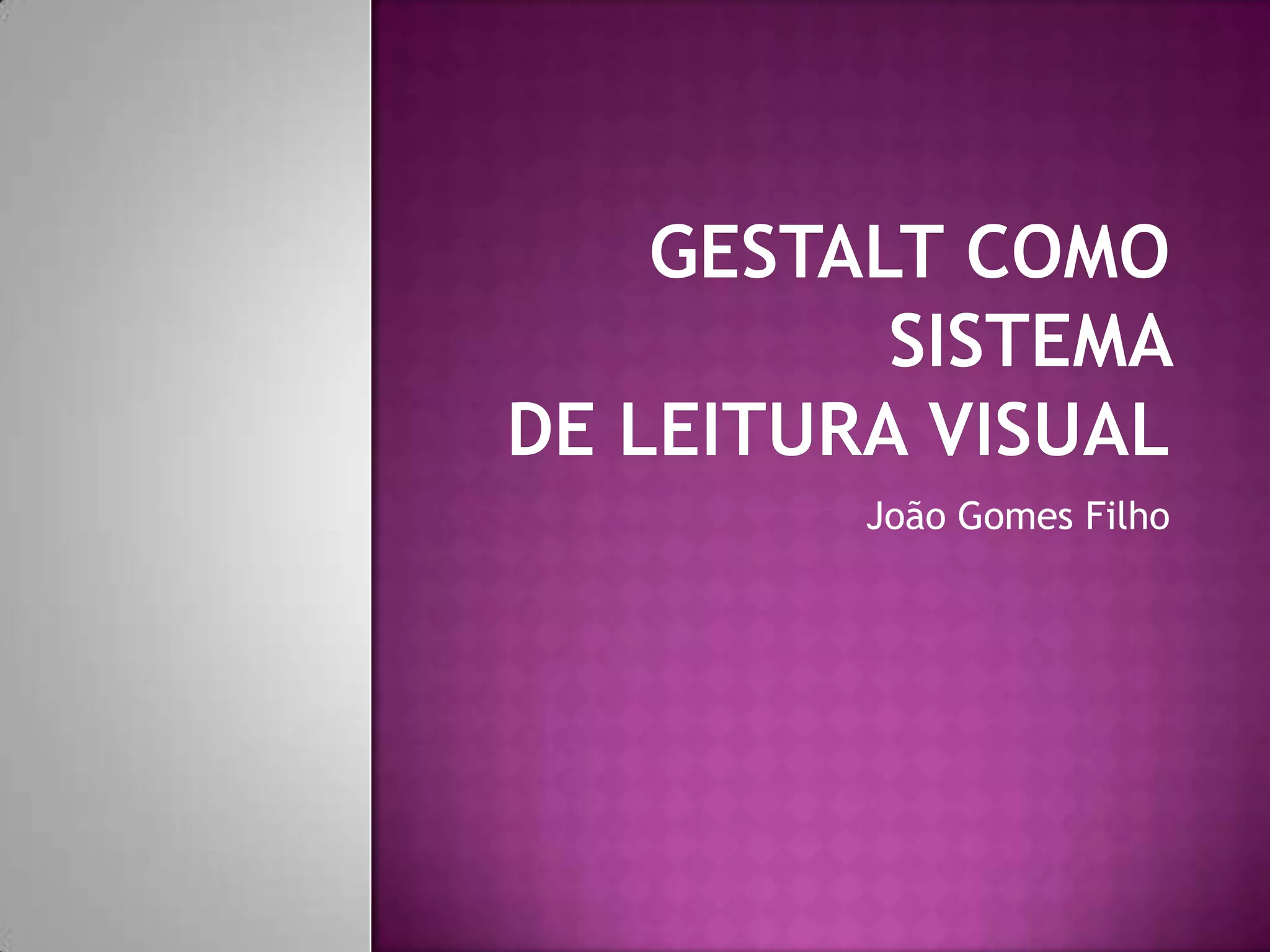 O documento discute as propriedades da forma e como ela pode ser definida. Também aborda os processos de percepção visual e leitura de imagens segundo as leis da Gestalt, incluindo as forças externas e internas envolvidas e as etapas para analisar a organização formal de um objeto.