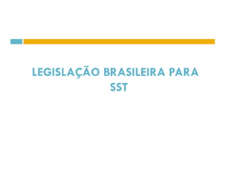 O documento descreve a legislação brasileira para segurança e saúde no trabalho (SST), incluindo a Consolidação das Leis do Trabalho (CLT) e as Normas Regulamentadoras (NRs). Também discute o desenvolvimento da abordagem de processo para gestão da SST, como o OHSAS 18001, que estabelece um sistema de gestão baseado no ciclo PDCA. O documento fornece detalhes sobre os elementos e requisitos do sistema de gestão da SST de acordo com o OHSAS 18001.