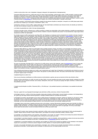 O documento discute a gestão de conflitos organizacionais. Apresenta que conflitos são naturais entre pessoas e podem ser oportunidades para crescimento se administrados corretamente. Também define conflitos e apresenta seus tipos e causas comuns em organizações.