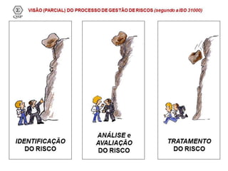 O documento discute a gestão de riscos e prevenção de perdas no transporte. Apresenta o conceito de gestão de riscos de acordo com a norma ISO 31000 e discute porque a gestão de riscos é fundamental hoje devido ao aumento de variáveis de decisão como globalização e complexidade dos produtos. Também aborda a identificação, classificação, tratamento e planejamento de riscos.