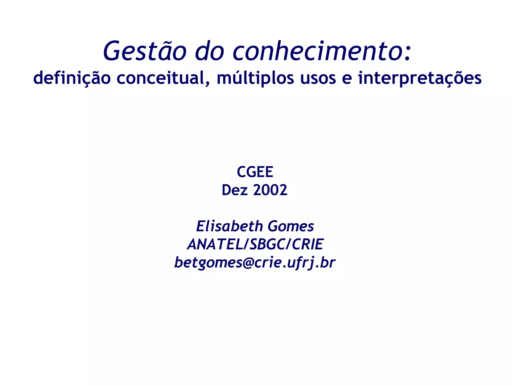 1) O documento discute a gestão do conhecimento, definindo-a como o gerenciamento e compartilhamento de informações em bancos de dados, documentos, procedimentos e no conhecimento das pessoas através de suas experiências. 2) A economia do conhecimento é baseada no conhecimento como principal fator de produção, diferindo da economia industrial onde a produção em escala era importante. 3) A gestão do conhecimento visa criar valor a partir dos ativos intangíveis da organização, como o conhecimento tác