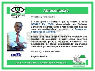 O documento discute a importância do planejamento para técnicos em segurança do trabalho. Ele explica que poucos técnicos planejam suas metas e ações de forma sistemática e que isso contribui para o insucesso. Também fornece diretrizes para que os técnicos desenvolvam um planejamento eficaz, incluindo estabelecer metas claras, realizar um diagnóstico da situação atual e definir ações estratégicas.