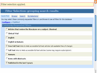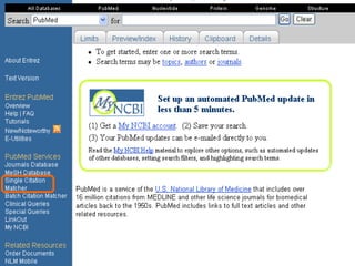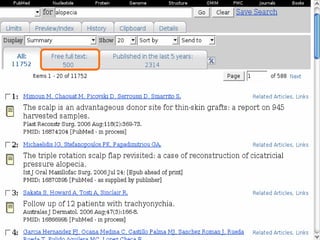 O documento fornece orientações sobre como realizar pesquisas bibliográficas para obter informações atualizadas e válidas sobre um tópico. Ele discute as limitações de notas, opiniões, livros e sites e recomenda o uso de periódicos indexados como PubMed e Embase. O documento explica como usar ferramentas como operadores booleanos, limites e MeSH para realizar pesquisas específicas e eficientes nessas bases de dados.