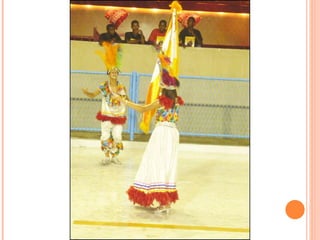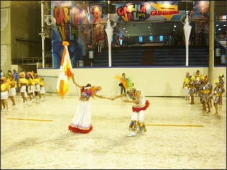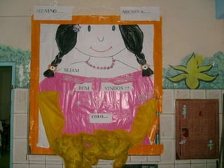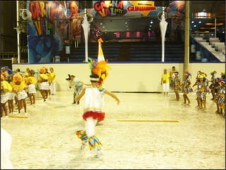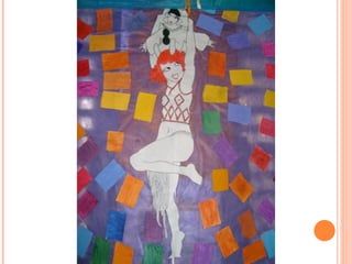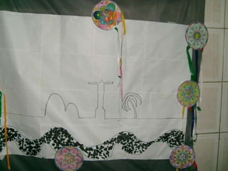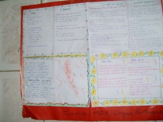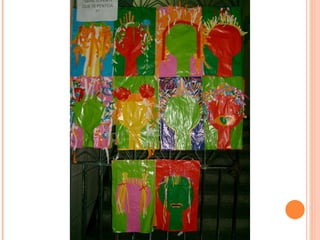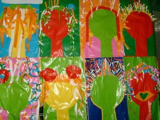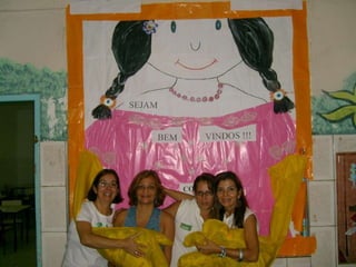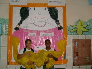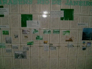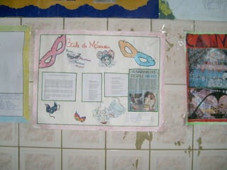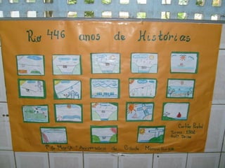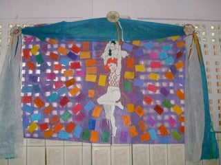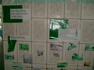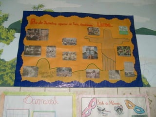 O documento descreve vários projetos artísticos realizados por alunos e professores da Escola Municipal Prof. Gilberto Bento da Silva, incluindo um mural de boas-vindas para o aniversário de 446 anos do Rio de Janeiro, murais de carnaval e uma mostra de dança da 9a Coordenadoria Regional de Educação de 2010.