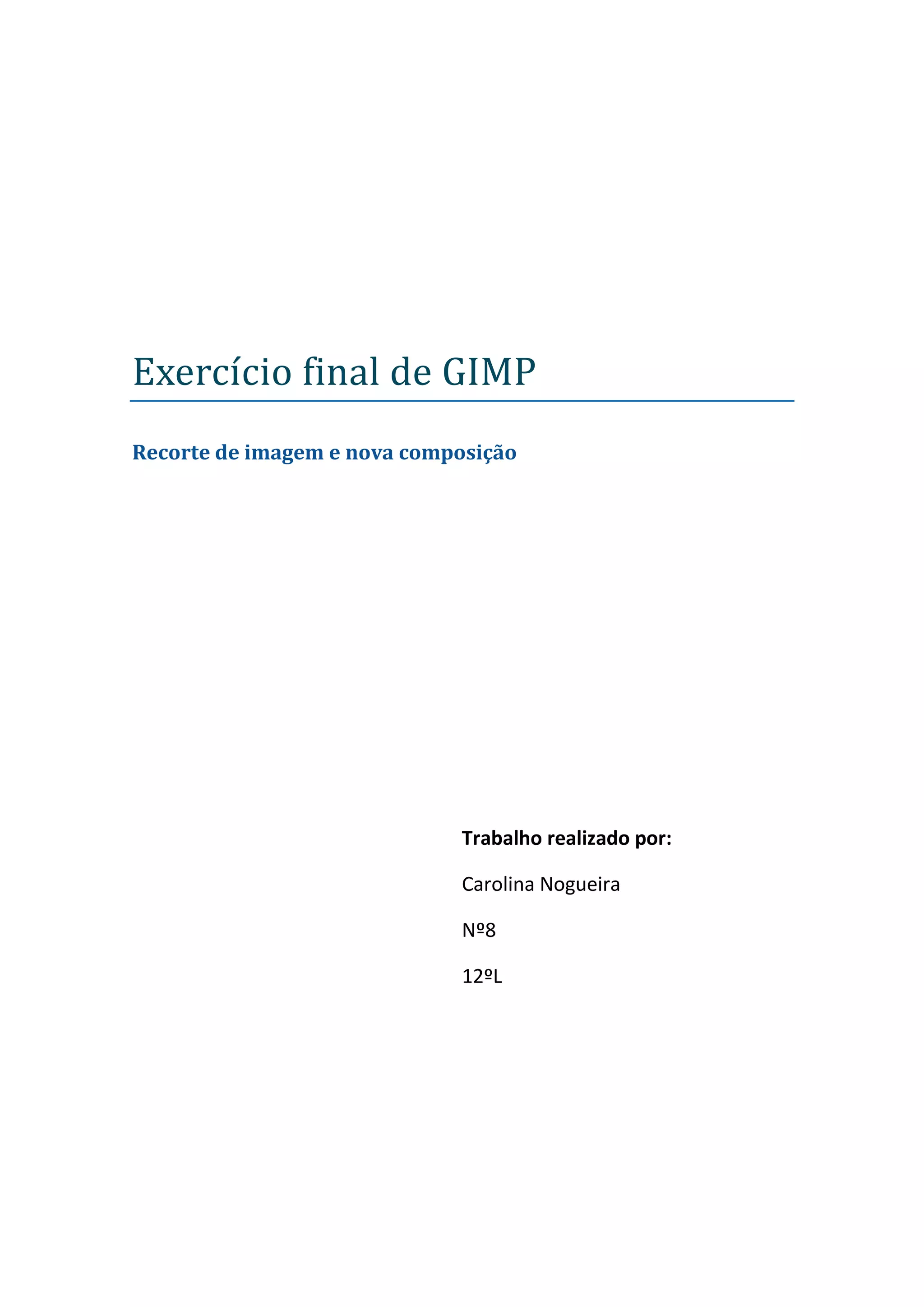 A aluna Carolina Nogueira realizou um exercício final no GIMP recortando imagens cuidadosamente e compondo uma nova imagem a partir delas, começando com estudos preliminares e chegando a uma proposta final recortando cada mulher representada na imagem original.
