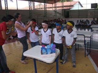 O documento descreve uma gincana da tabuada realizada por professoras em uma escola para ajudar os alunos a memorizarem as operações de multiplicação de forma dinâmica e criativa através de provas como "Árvore da Tabuada", "Pescaria da Tabuada", "Roleta da Multiplicação" e "Cartões Matemáticos". A gincana incentivou a participação dos alunos e melhorou os índices da disciplina de tabuada.