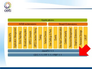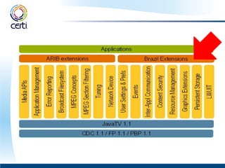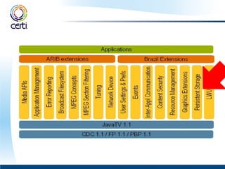 O documento introduz o conceito do cenário brasileiro de TV Digital, o middleware Ginga e suas ferramentas. Discute o padrão brasileiro ISDB-Tb, o middleware Ginga e seus subsistemas Ginga-NCL e Ginga-J. Também apresenta ferramentas open source relacionadas e o status atual da TV Digital no Brasil.