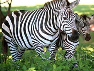 A zebra vive em grupos de 20 na África, se alimentando de capim. Elas medem entre 2,4-1,5m, pesam 250-320kg e vivem 20-30 anos. As zebras dão à luz um potrinho por ano e podem ser domesticadas se capturadas jovens.