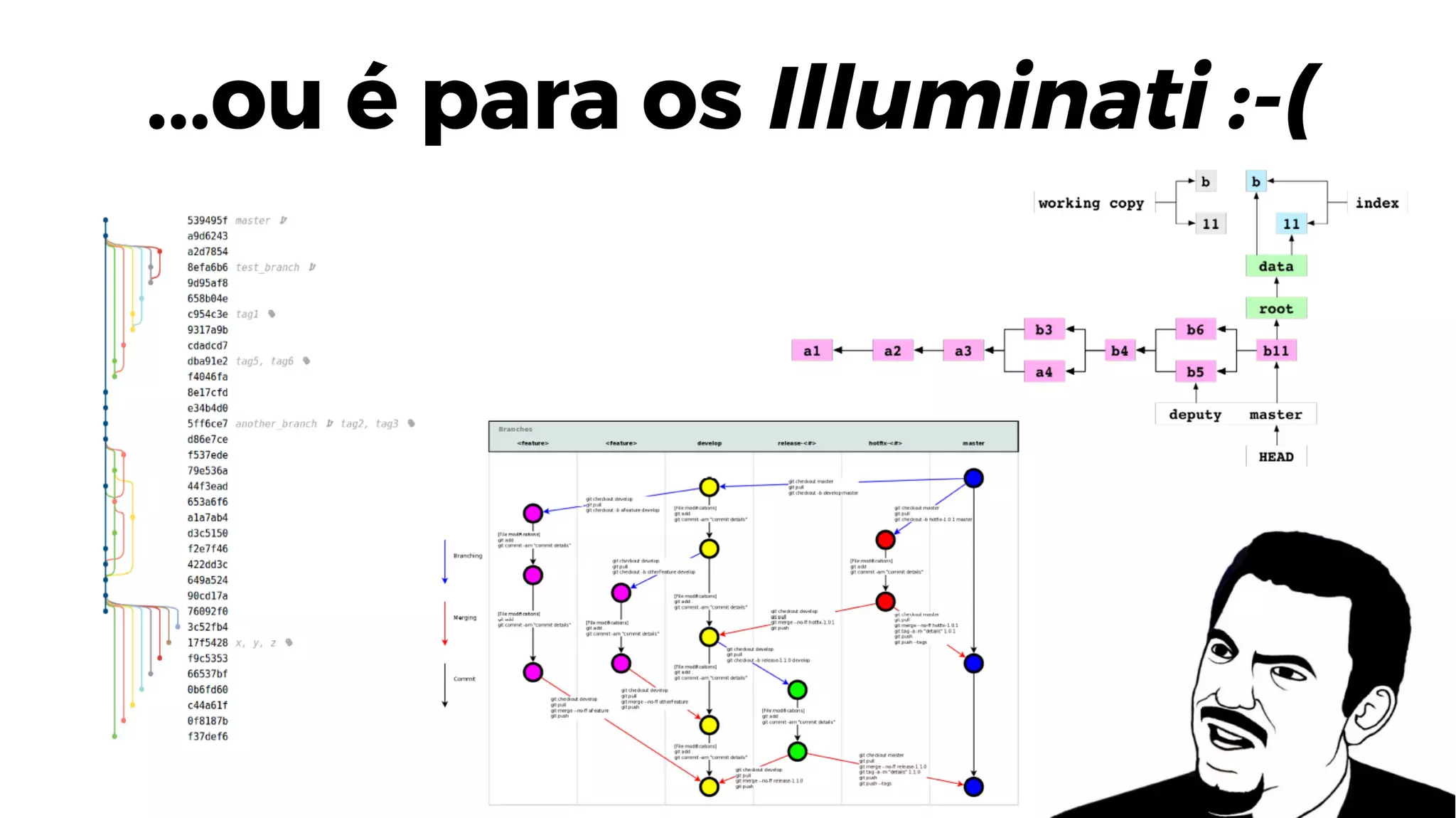 O documento apresenta um guia sobre o uso do sistema de controle de versão Git. Resume conceitos como commits, branches e fluxos de trabalho comuns. Também discute potenciais problemas como conflitos e formas de resolvê-los, como usar rebase e merge de forma a evitar complicações.