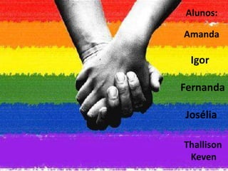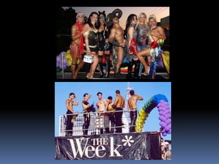 O documento resume conceitos sobre a comunidade GLBT, incluindo definições de lésbicas, gays, bissexuais e transexuais. Também apresenta exemplos de celebridades GLBT e discute brevemente união estável entre pessoas do mesmo sexo e homofobia.