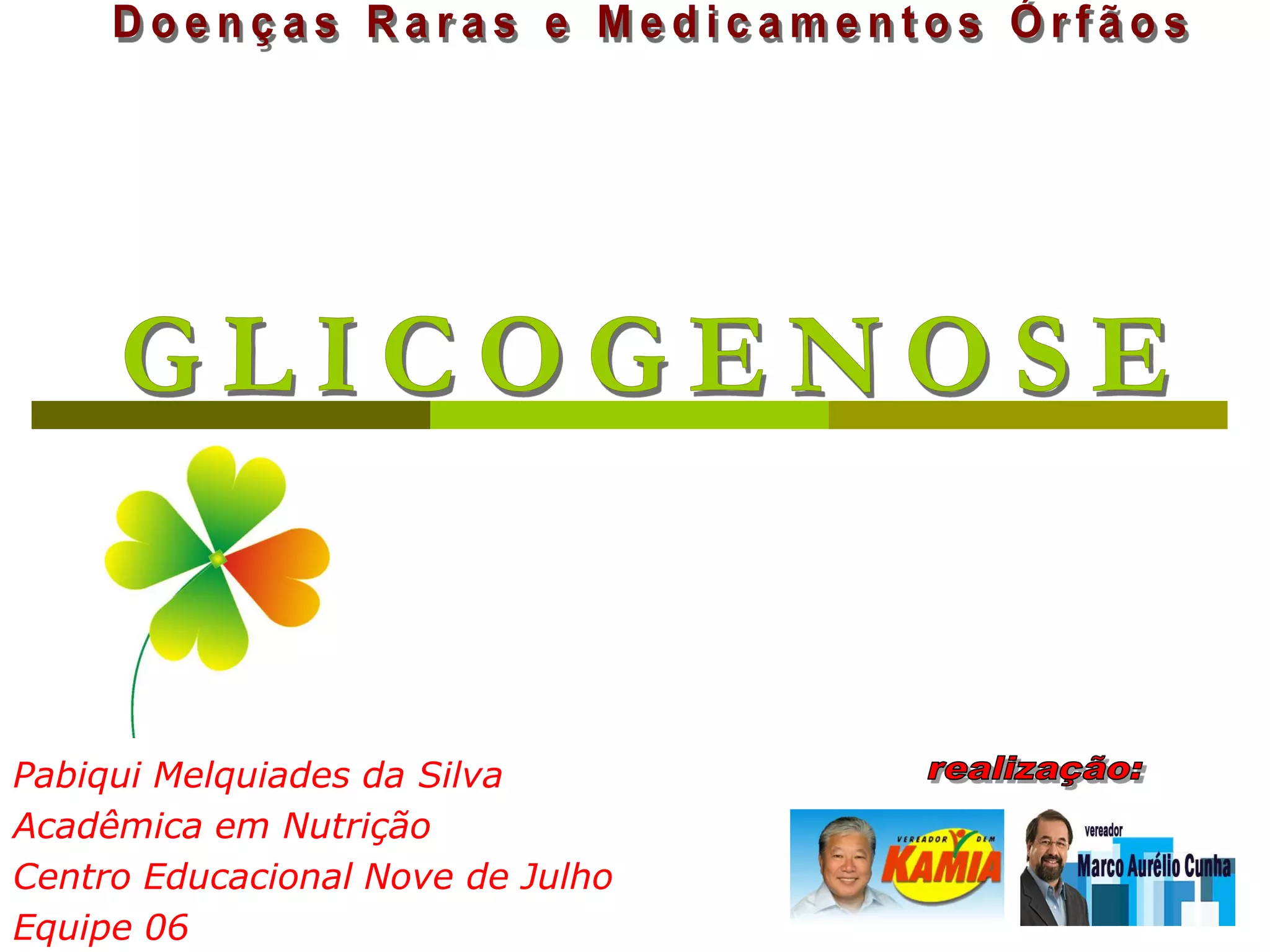 A doença do armazenamento de glicogênio é um erro no metabolismo hereditário que resulta em concentrações alteradas de glicogênio no organismo, caracterizado pela falta das enzimas do metabolismo do glicogênio. Os sinais mais comuns incluem hipoglicemia após jejum ou infecções, aumento do tamanho do fígado, obesidade troncular e atraso no crescimento. O diagnóstico envolve exames laboratoriais e determinação da enzima em amostra de tecido hepático. O tratamento