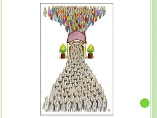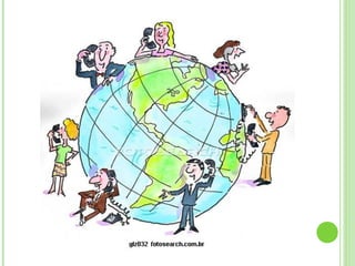 O documento discute duas visões da globalização de acordo com Milton Santos. A primeira é uma "globalização como fábula", que homogeneiza o mundo de forma superficial, ignorando diferenças profundas. A segunda é uma "globalização como perversidade", que aumenta desemprego, pobreza e desigualdade através de comportamentos competitivos hegemônicos. Uma terceira visão defende uma "outra globalização" mais humana e sustentável, onde as pessoas não são subjugadas à tecnologia e capital.