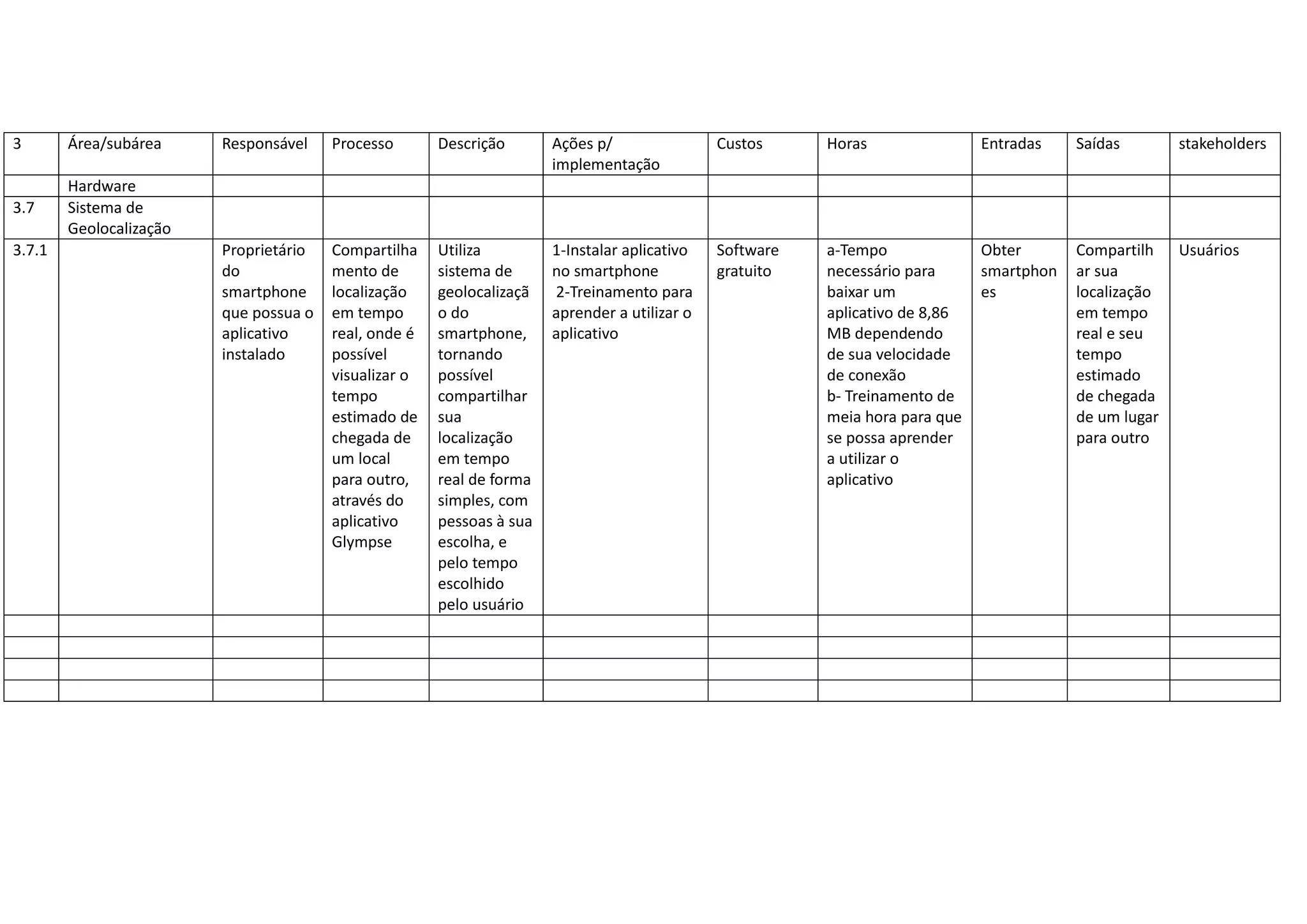 Este documento descreve um sistema de geolocalização que permite aos proprietários de smartphones compartilhar sua localização em tempo real usando o aplicativo Glympse. O aplicativo usa a geolocalização do smartphone para permitir que os usuários compartilhem sua localização com outras pessoas escolhidas por um período de tempo determinado.