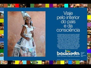O documento descreve jornadas de aprendizagem e expedições pelo Brasil em busca de riquezas sustentáveis, como equilíbrio e igualdade. Convida o leitor a descobrir um Brasil que se sustenta.