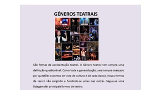 Slide elaborado por Dorivânia Xavier. Para aulas detalhadas sobre Introdução ao Teatro. Material completo no www.cirandadaarte.com.br/webzine