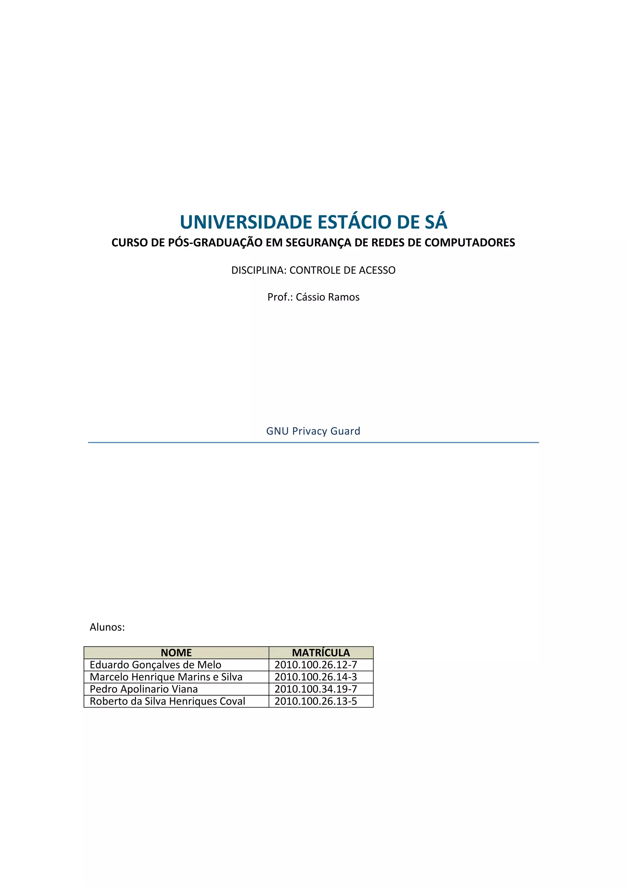 Este documento descreve como criar chaves PGP usando o GNU Privacy Guard (GPG) nos sistemas operacionais Windows XP e Linux Ubuntu. Ele explica como gerar chaves, exportar e importar chaves públicas entre os sistemas, e criptografar/descriptografar arquivos usando as chaves.