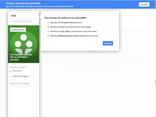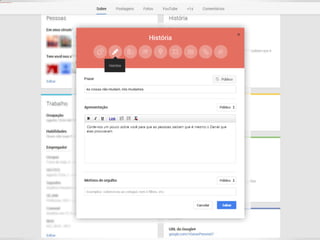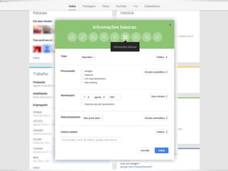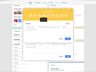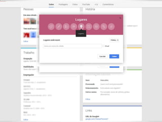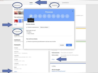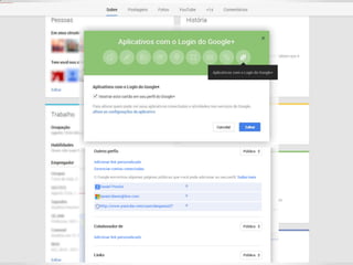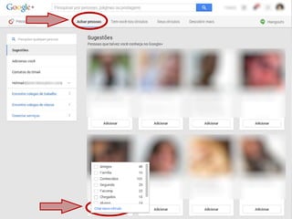 O Google+ é uma rede social do Google lançada em junho de 2011, que facilita o compartilhamento na web e permite aos usuários trocar mensagens, compartilhar fotos e links. Os usuários podem organizar suas conexões em 'círculos', criar comunidades, eventos e participar de bate-papos através do Hangouts. Para utilizar o Google+, é necessário ter uma conta no Gmail.