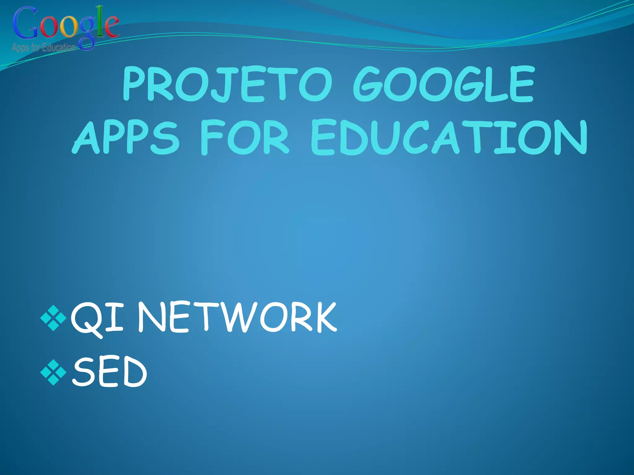 O documento descreve as ferramentas educacionais do Google Apps for Education, incluindo armazenamento ilimitado na nuvem, colaboração em tempo real e acesso a mais de 55 milhões de usuários. Ele também detalha como essas ferramentas, como Drive, Documentos e Planilhas, estão sendo usadas em uma escola piloto para introduzir novas formas de ensinar e aprender.