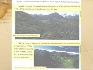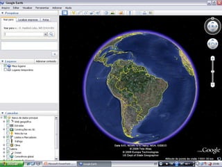 O documento descreve experiências de alunos do 4o ano do ensino fundamental utilizando o Google Earth para estudar a geografia do município do Rio de Janeiro, incluindo relevo, baías, maciços e restinga. Os alunos também traçaram percursos realizados em passeios e relataram suas experiências no PowerPoint.