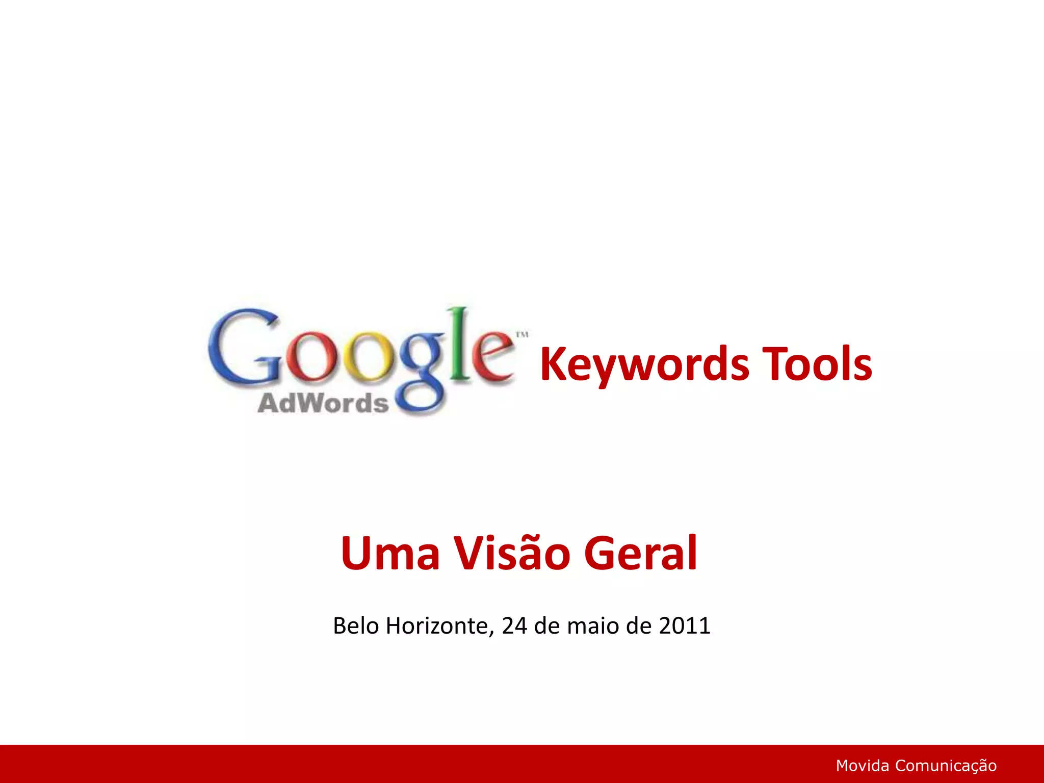 O documento fornece uma visão geral da ferramenta Google Keywords Tools, explicando como ela pode ser usada para pesquisar palavras-chaves e termos relacionados, além de fornecer métricas como volume de pesquisas e concorrência. O texto também descreve como exportar os dados da ferramenta para planilhas ou outros formatos.