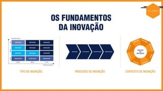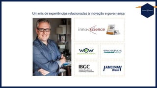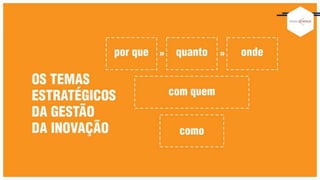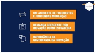 O documento discute como 16 das 100 empresas mais inovadoras do Brasil nos últimos 12 anos abordaram a inovação estratégica por meio da governança, citando fontes como Christensen, Tushman, O'Reilly e Deschamps.