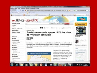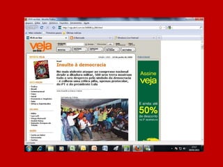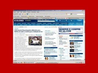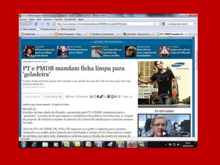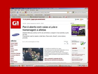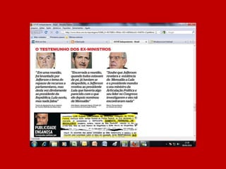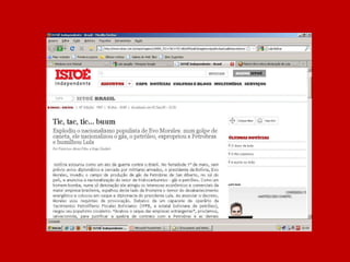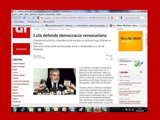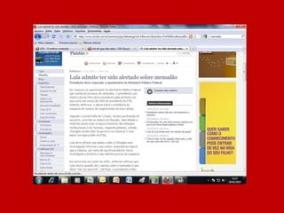 O documento resume a história do governo Lula através de manchetes, afirmando que nunca antes no Brasil tanto foi feito em tão pouco tempo e pergunta o que o leitor achou, sugerindo votar no governo Lula caso esteja satisfeito com o trabalho realizado.