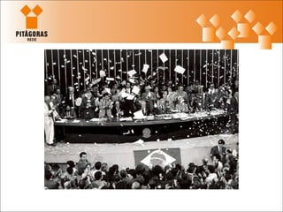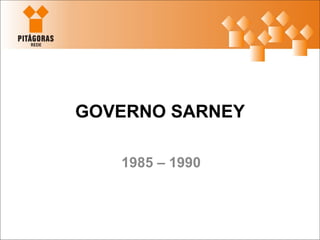 O documento descreve o período do governo Sarney no Brasil entre 1985-1990, marcado pela hiperinflação e vários planos econômicos fracassados para tentar combatê-la, como o Plano Cruzado e a criação da nova moeda Cruzado. Também conta sobre a elaboração de uma nova Constituição em 1988 e os principais acontecimentos da época.