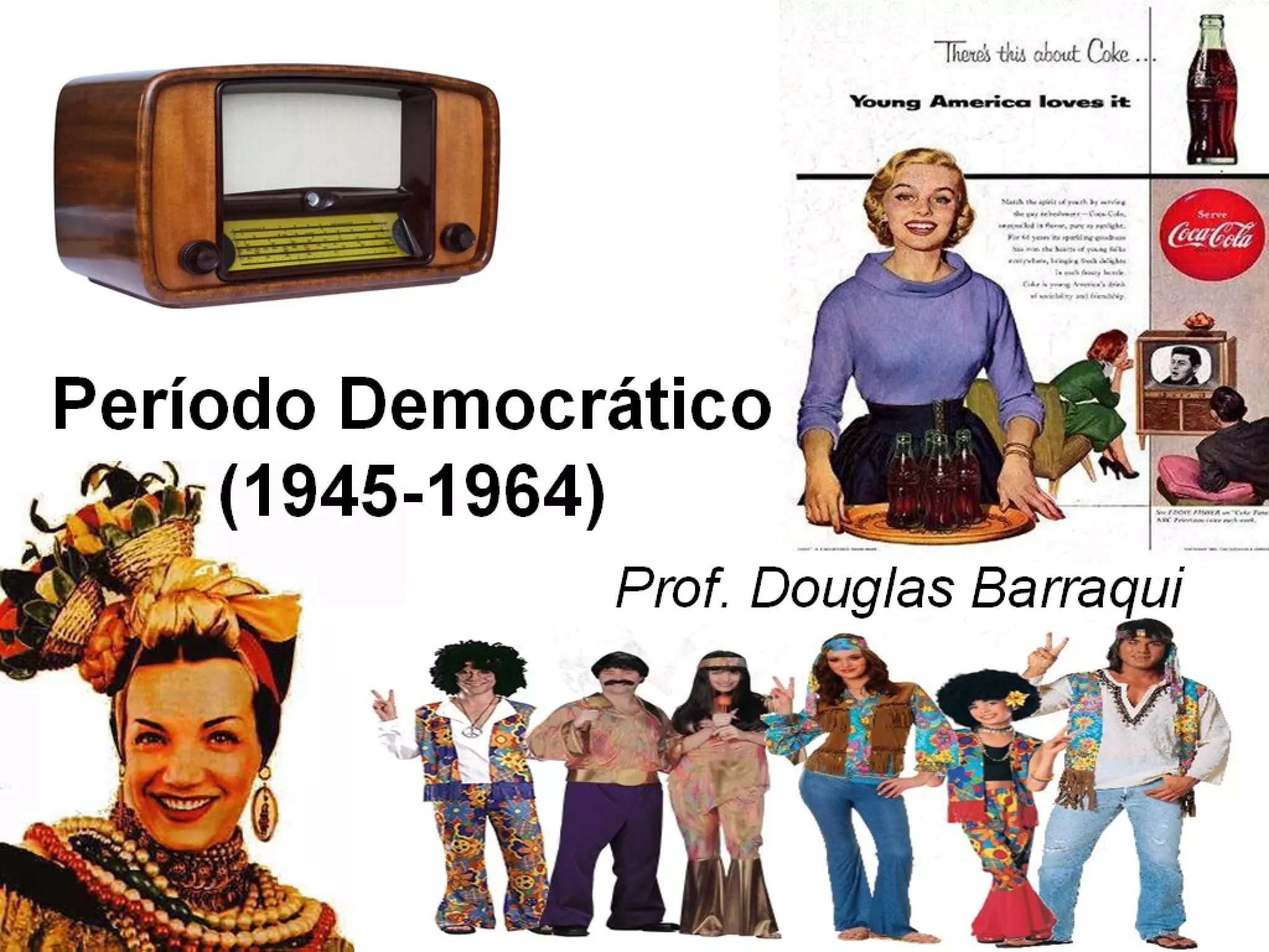 O documento descreve o contexto político e socioeconômico do Brasil entre 1946-1964, desde o fim da Era Vargas até o golpe militar. Inclui detalhes sobre os governos de Eurico Dutra, Getúlio Vargas, Juscelino Kubitschek e João Goulart, além dos movimentos culturais dessa época como a Bossa Nova e o Cinema Novo.