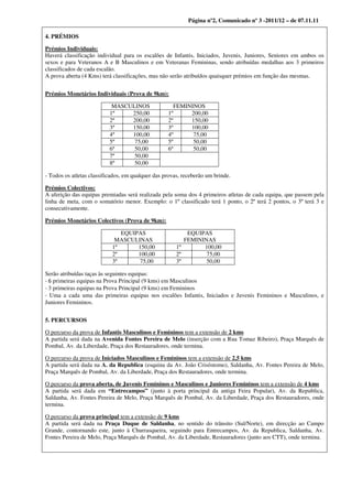 Este documento fornece informações sobre o 54o Grande Prémio de Natal organizado pela Associação de Atletismo de Lisboa, incluindo datas de inscrição, escalões, prémios, percursos, horários de partida e outras regras. Será uma prova de corrida de 9km e outras distâncias para diferentes escalões, a realizar-se em 18 de dezembro em Lisboa.
