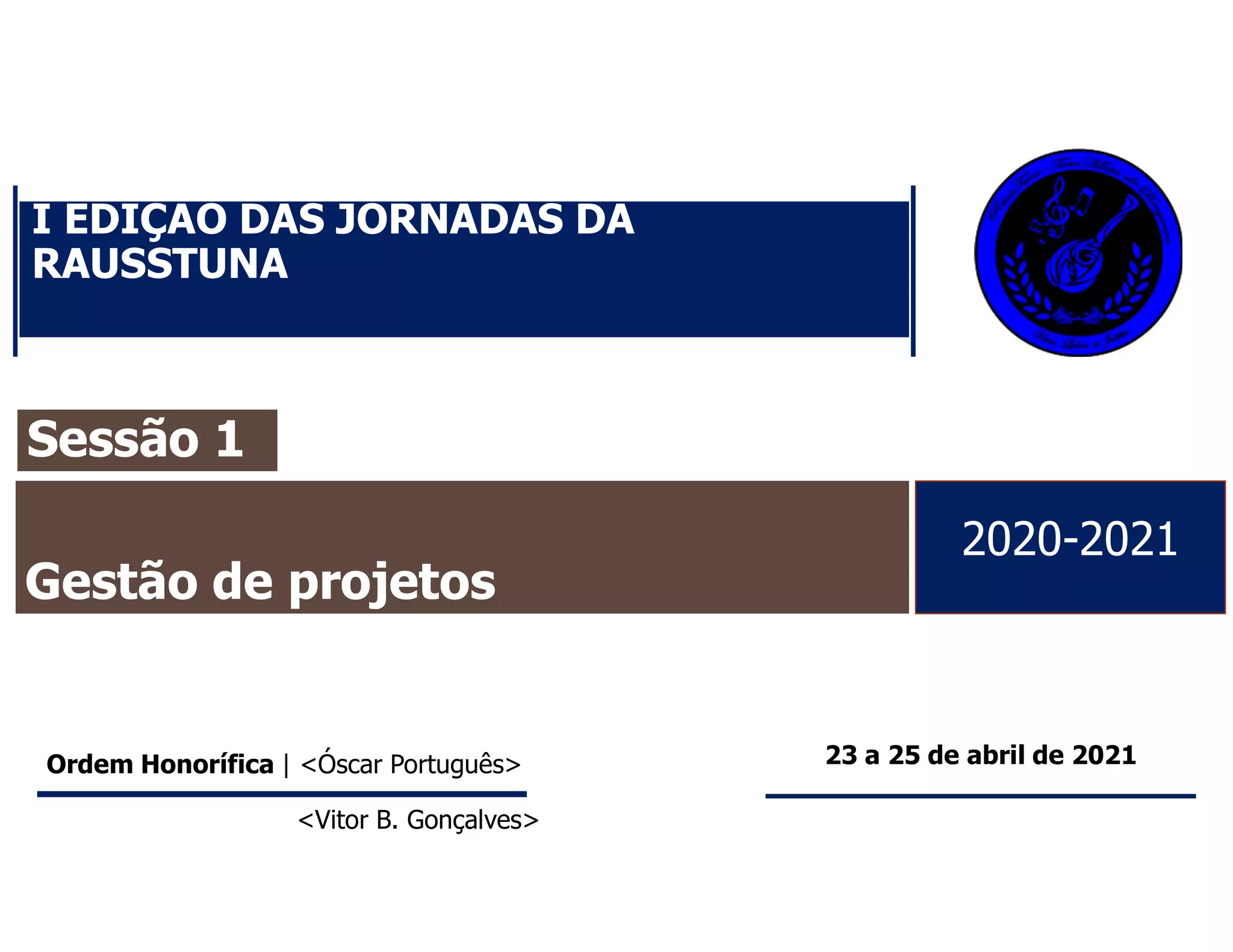 Este documento apresenta uma sessão sobre gestão de projetos realizada entre 23 e 25 de abril de 2021. A sessão discute conceitos-chave da gestão de projetos como planeamento, estrutura em fases, gestão de prazos, custos e riscos. Também apresenta ferramentas como diagramas de Gantt e PERT para planeamento e gestão de projetos.
