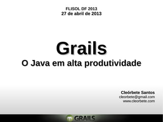 O documento apresenta uma introdução ao Grails, um framework de desenvolvimento web baseado em Groovy, destacando suas funcionalidades e vantagens em relação a outras ferramentas Java. Aborda conceitos como customização, os princípios do Grails e sua estrutura, além de exemplos de código e comandos úteis. Também menciona tecnologias como o GORM e o uso de bancos de dados leves como o H2 na implementação de aplicações Grails.