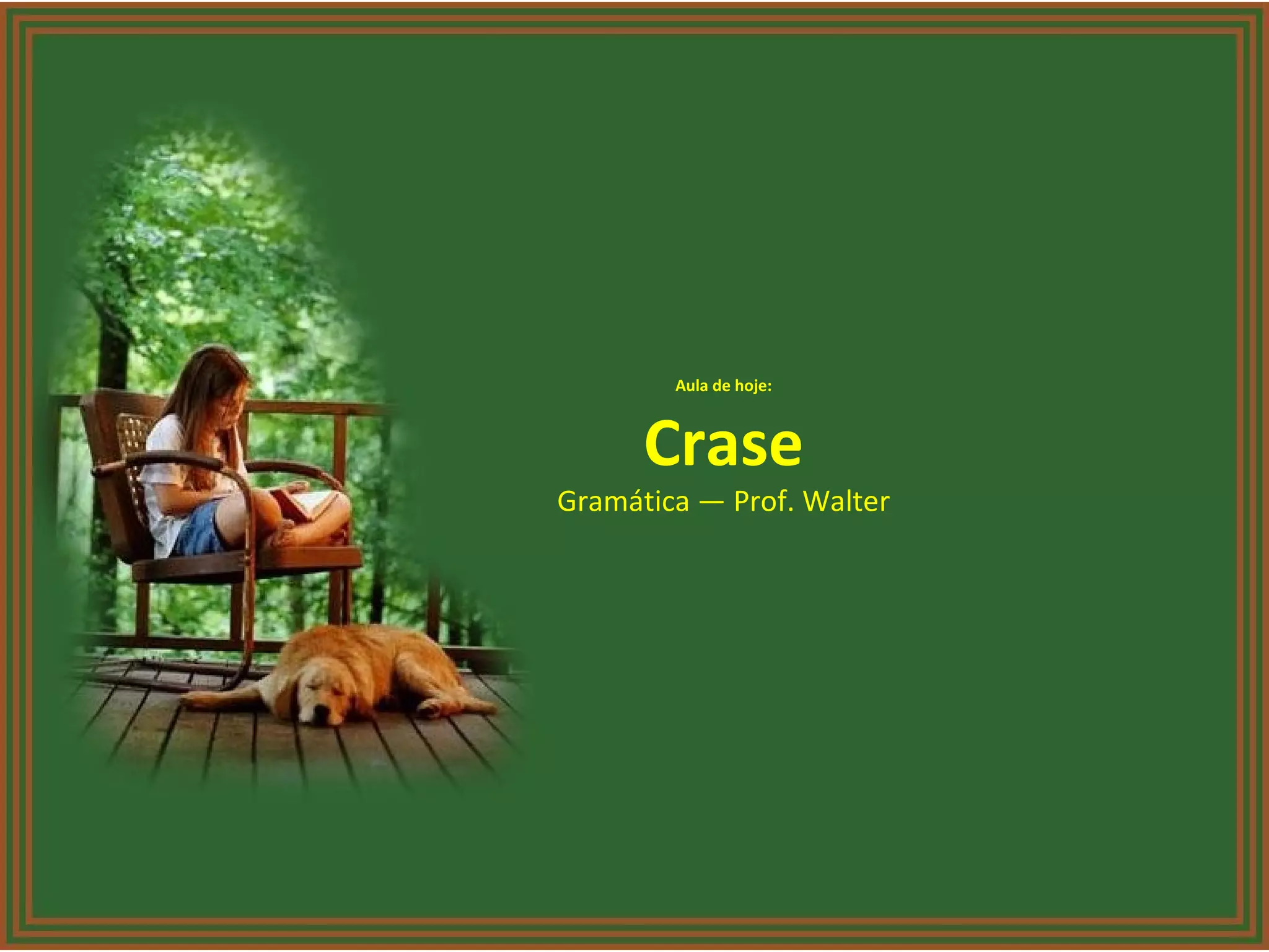 O documento discute as regras da crase em português. Explica que a crase ocorre quando há a fusão de duas vogais idênticas marcada pelo acento grave, principalmente antes de preposições + artigos, pronomes ou nomes próprios. Fornece vários exemplos e métodos práticos para identificar quando usar crase.