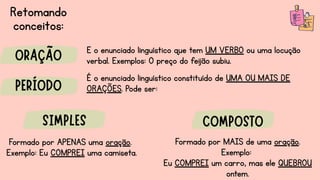 E o enunciadolinguístico que tem UM VERBO ou uma locução