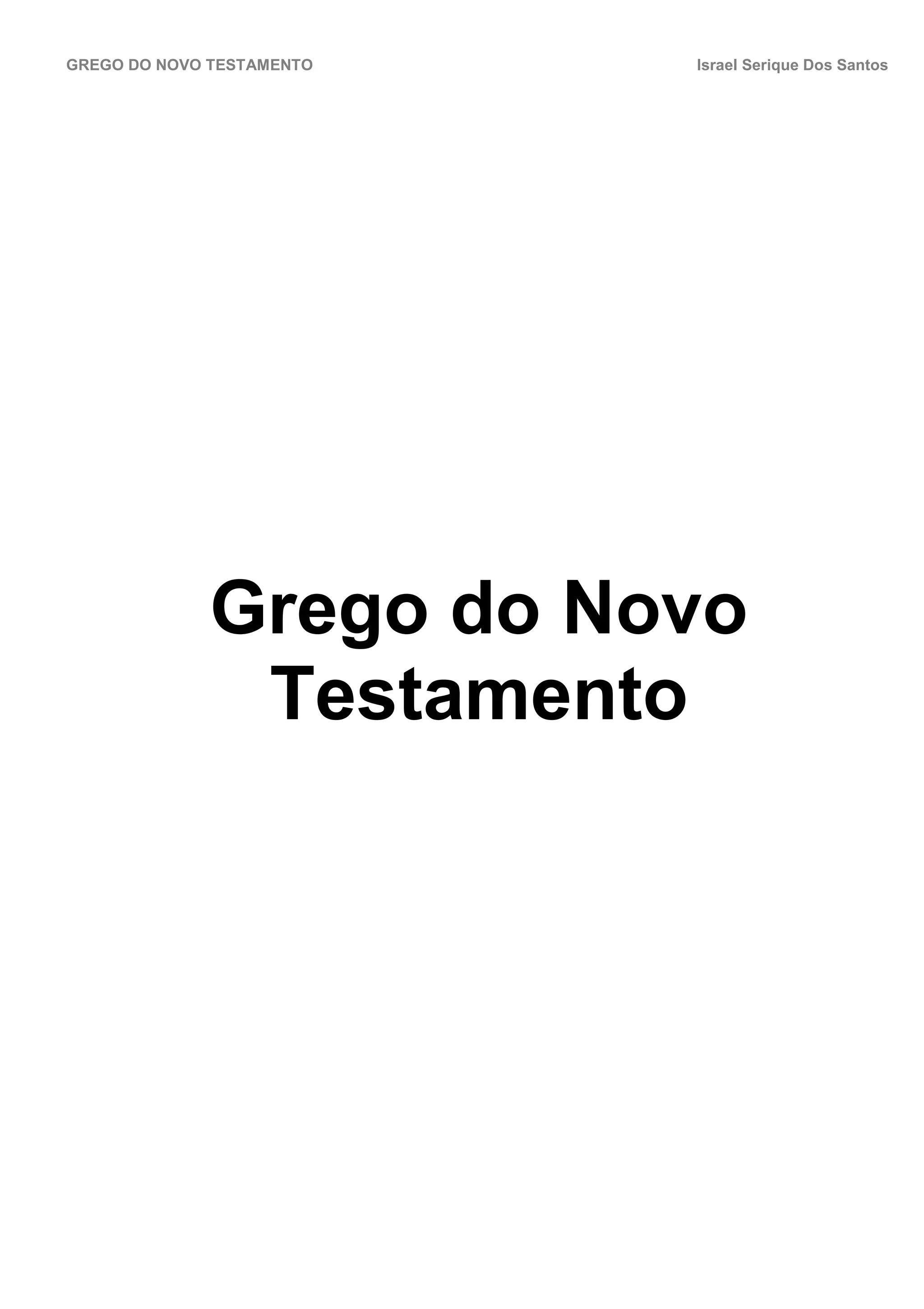 1) O documento descreve o alfabeto grego, sua fonologia, pronúncia e pontuação. Apresenta também vocábulos bíblicos comuns no Novo Testamento e explica a identificação das classes gramaticais.
