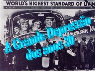 2) A Grande Depressão dos anos 1930 foi caracterizada por uma crise financeira, desemprego em massa e colapso da produção agrícola.