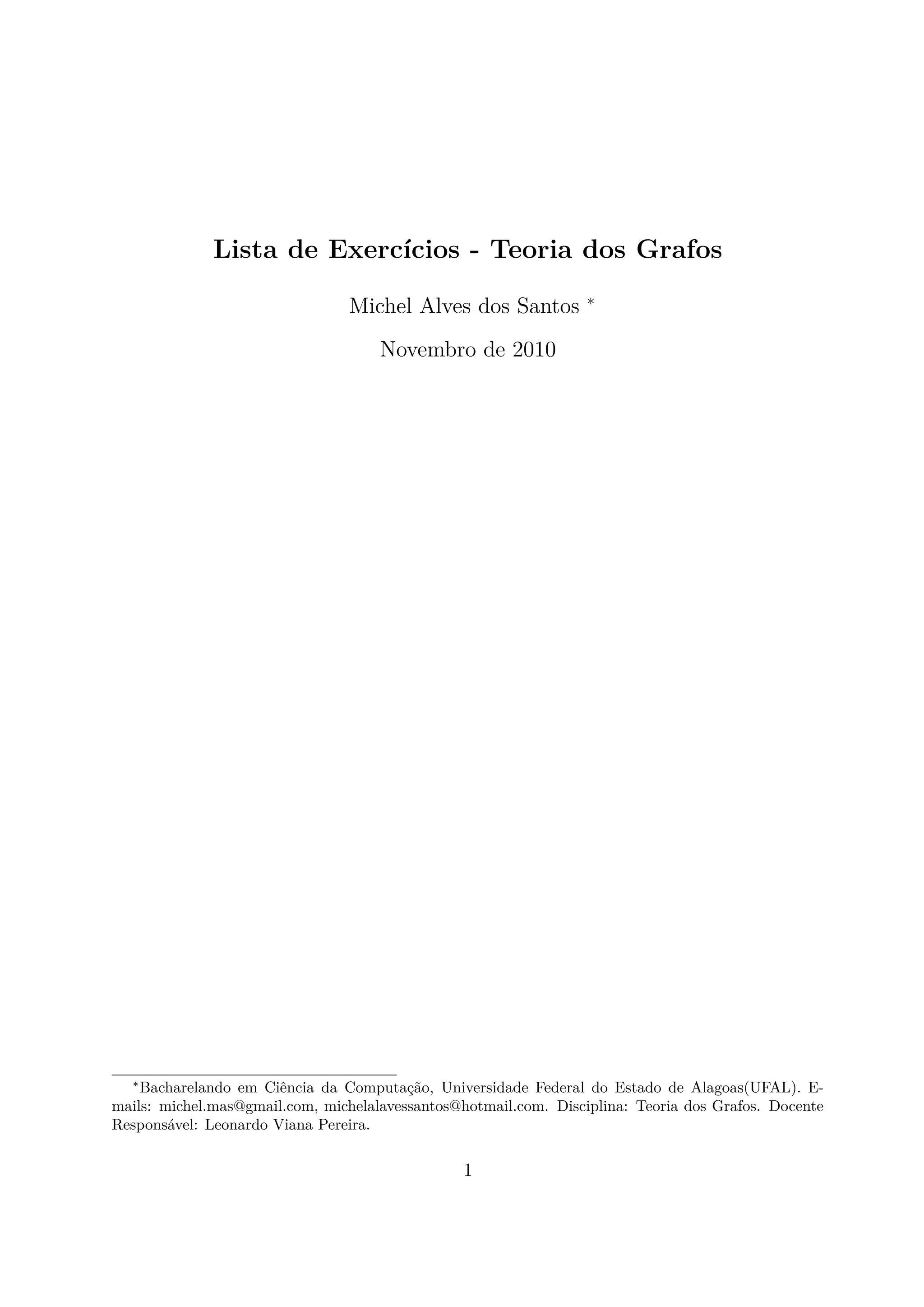 (1) Este documento apresenta uma lista de exercícios sobre teoria dos grafos com questões sobre árvores, grafos eulerianos e hamiltonianos.