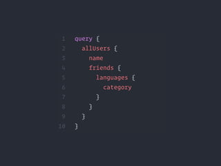 GraphQL é um padrão para APIs que permite que os clientes determinem quais dados precisam através de uma linguagem de consulta em um único endpoint, resolvendo problemas como overfetching e underfetching do REST. Ele define um schema que especifica os recursos e tipos de dados e inclui queries para recuperar dados e mutations para criar e modificar dados no backend.