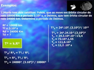 1) O documento discute as leis de Kepler sobre o movimento planetário e a teoria da gravitação universal de Newton.