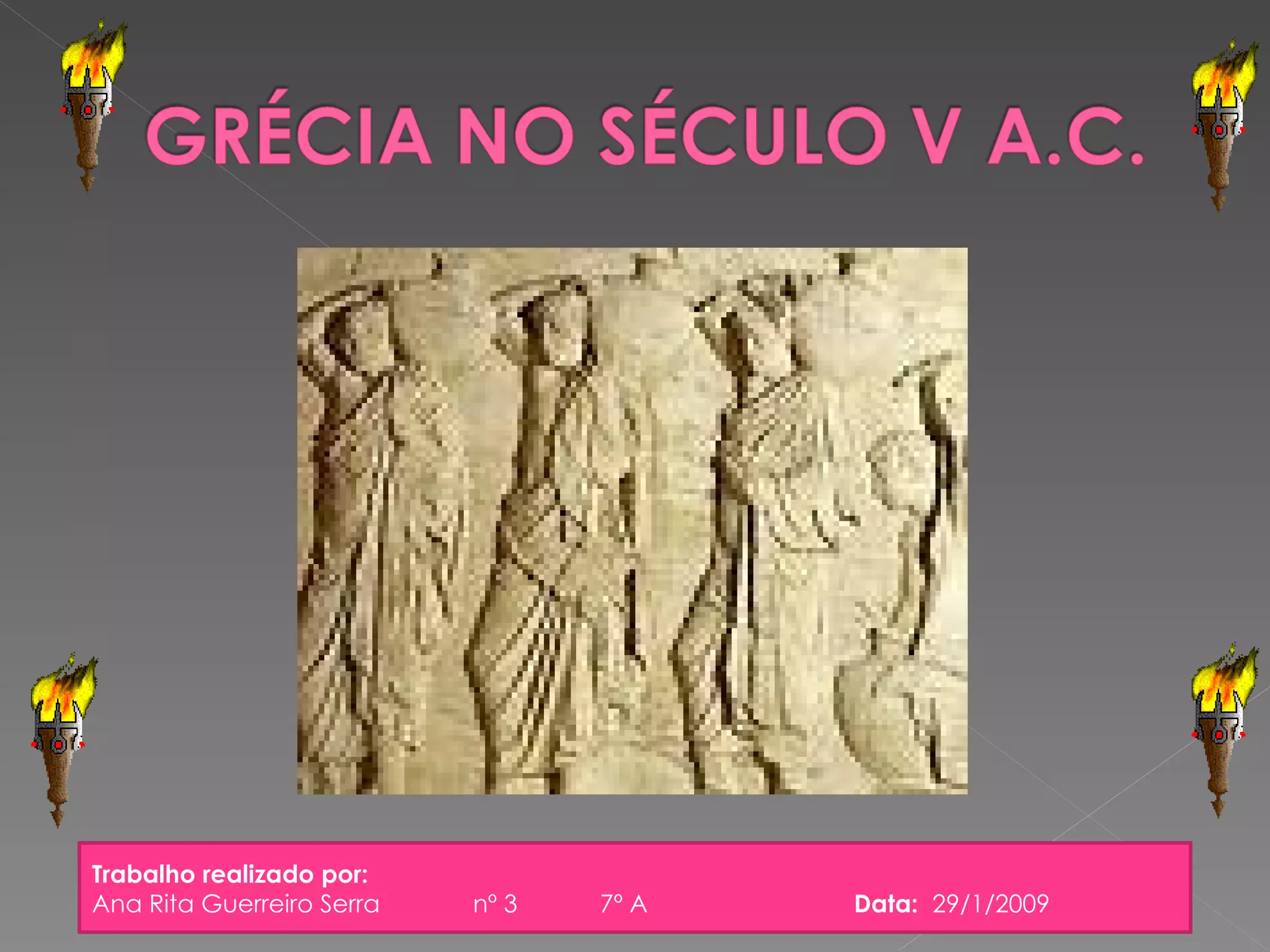 Este documento fornece um resumo da história e cultura da Grécia antiga. A Grécia é composta principalmente por montanhas, tornando a agricultura difícil e levando os gregos a se concentrarem no comércio marítimo entre suas cidades-estados independentes. Os gregos eram politeístas e destacaram-se em filosofia, medicina, arquitetura e arte, com foco na figura humana.