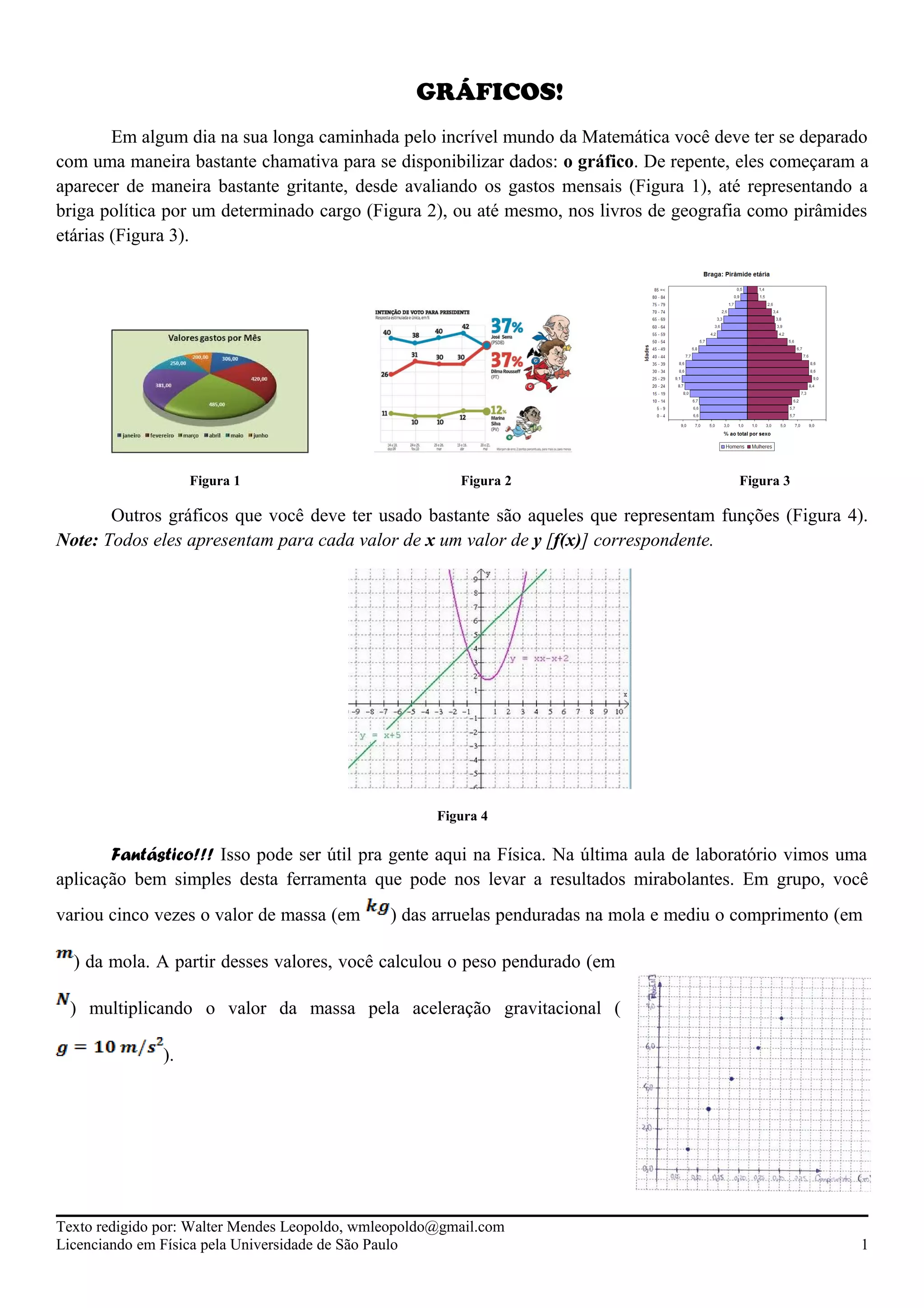 1) O documento descreve como usar gráficos e o Microsoft Excel para analisar dados experimentais sobre a constante elástica de uma mola.