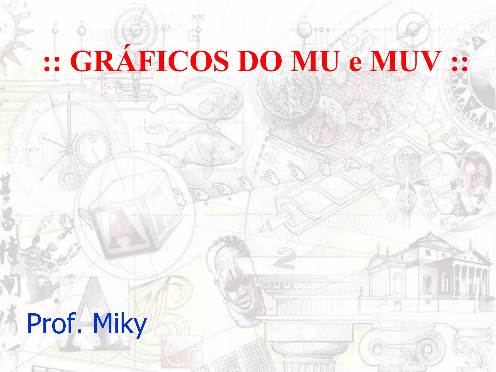 O documento aborda gráficos de movimento uniforme (MU) e movimento uniformemente variado (MUV), destacando as equações horárias e as representações gráficas de velocidade, espaço e aceleração. No MU, a velocidade é constante e os gráficos são linhas retas, enquanto no MUV a aceleração é constante e os gráficos apresentam formas parabolas. O texto também menciona como calcular variações de espaço e velocidade a partir das áreas abaixo dos gráficos.