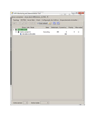 O documento descreve o framework JPPF para computação paralela em Java, explicando sua arquitetura, componentes, instalação e execução de aplicações. O JPPF permite dividir tarefas Java em partes executadas simultaneamente em vários computadores.