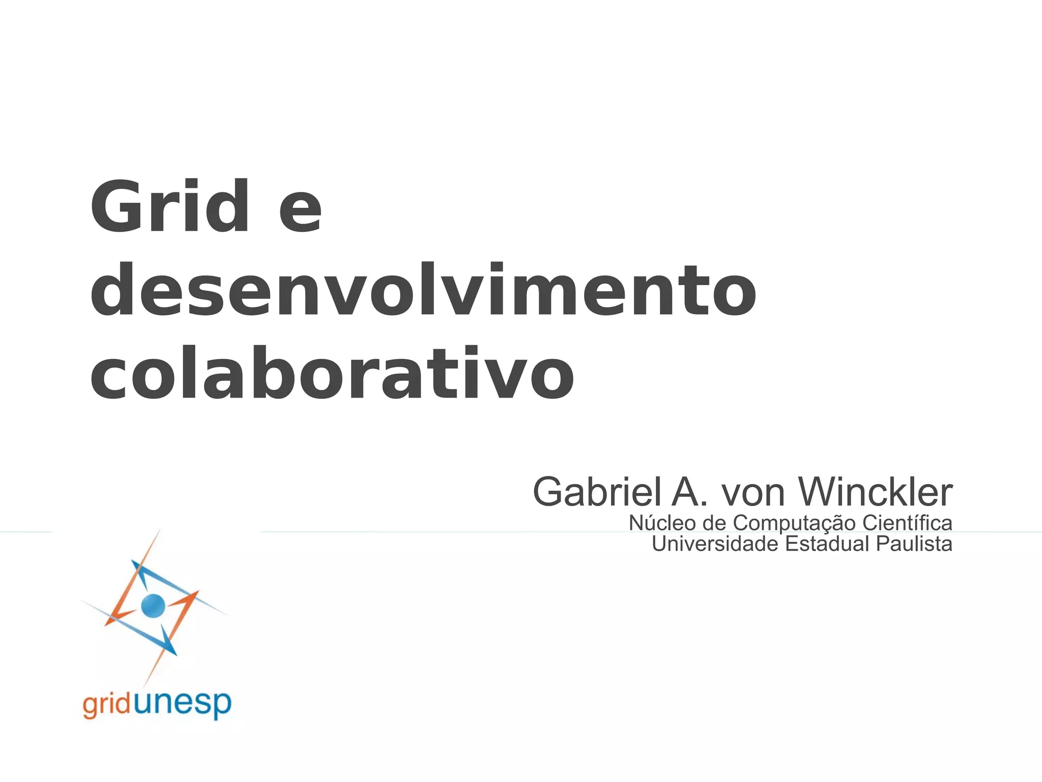 O documento resume conceitos de grids computacionais, o projeto GridUNESP que conecta 7 locais na UNESP para pesquisa, e uma experiência no CampusParty usando recursos ociosos ("grids oportunistas") para projetos voluntários como cálculos para pesquisa sobre água e energia limpa.