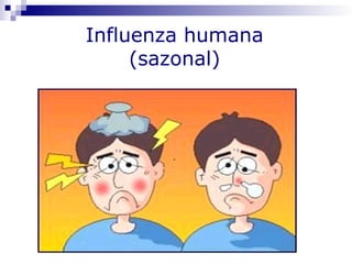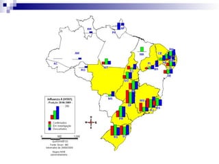 O documento fornece informações sobre diferentes tipos de influenza, incluindo a influenza sazonal, a influenza aviária H5N1, e a pandemia de influenza H1N1 de 2009. Resume as definições de caso, transmissão, sintomas, grupos de risco, diagnóstico e tratamento da influenza H1N1. Também discute as medidas de saúde pública implementadas no Brasil em resposta à pandemia.