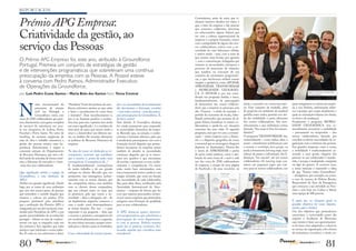 O documento descreve as atividades e estratégias de gestão de recursos humanos da Groundforce. A empresa recebeu o Prémio APG Empresa por seu conjunto de estratégias focadas no bem-estar dos funcionários. O administrador Pedro Ramos explica quatro programas principais: APOIAR oferece apoio aos funcionários, APROXIMAR melhora a comunicação, TRANSFORMAR desenvolve lideranças e MOBILIDADE GEOGRÁFICA incentiva a mobilidade dentro da empresa.