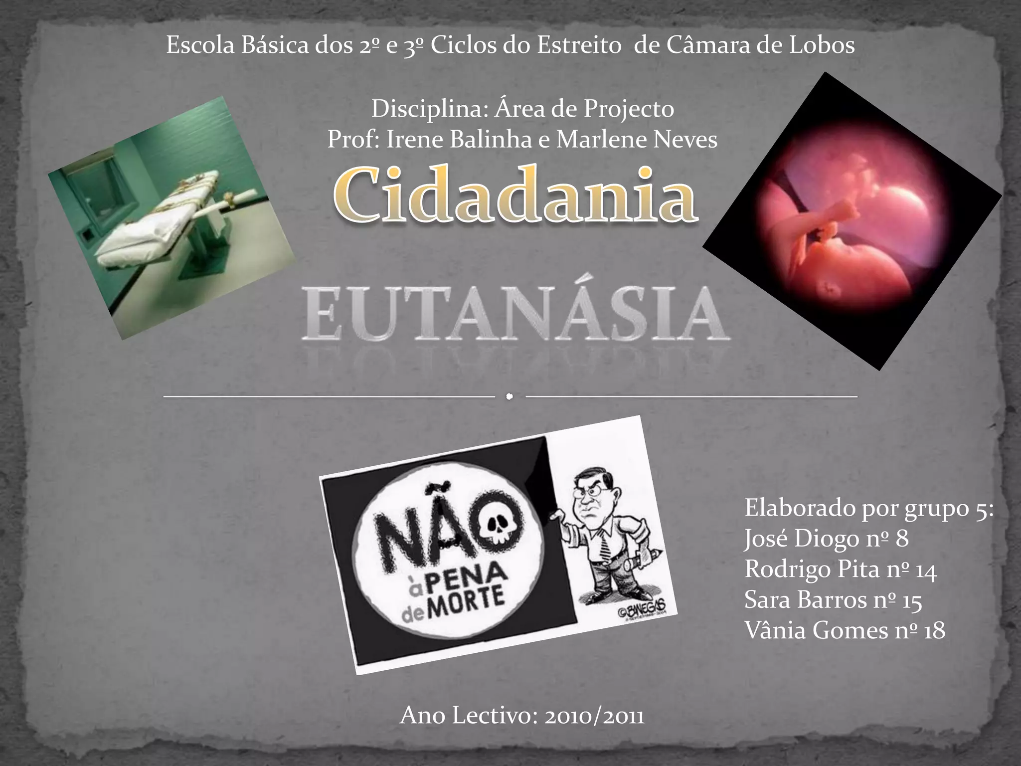 Este documento discute o tema da eutanásia, definindo-a como a prática de abreviar a vida de um paciente incurável de maneira controlada para poupar seu sofrimento. Também aborda a eutanásia em animais, países onde é legalizada, e casos reais como o de Sigmund Freud e Terri Schiavo.