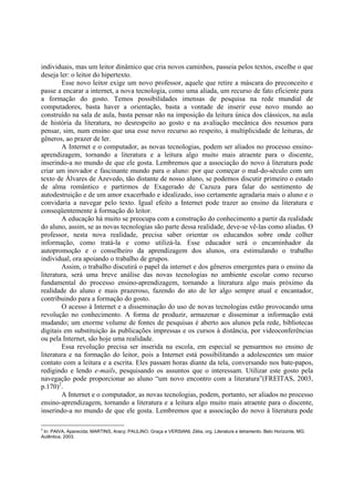 O documento apresenta um projeto de pesquisa sobre o uso do e-mail como estratégia pedagógica no ensino de Língua Portuguesa. O projeto teve como objetivo levar os alunos a refletirem sobre as práticas de correspondência escrita e a produzirem e-mails em atividades de sala de aula, visando desenvolver o letramento digital dos estudantes. O autor defende que o e-mail é um gênero textual importante de ser estudado e que sua utilização na escola amplia as possibilidades comunicativas dos alun