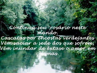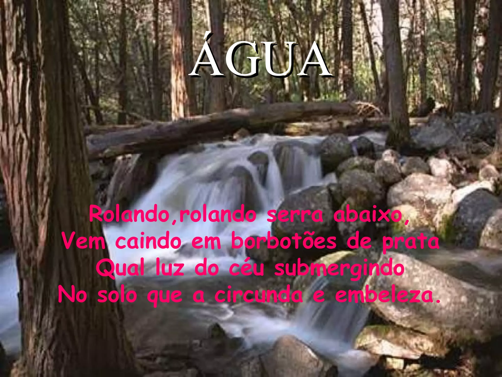 A água é descrita como caindo em borbotões de prata e saciando a sede dos que sofrem. Ela serpenteia em ondas límpidas e guarda segredos de amor. Embora os rios a carreguem por prados florescentes, a água também pode destruir pontes, casas e cidades quando enfurecida.