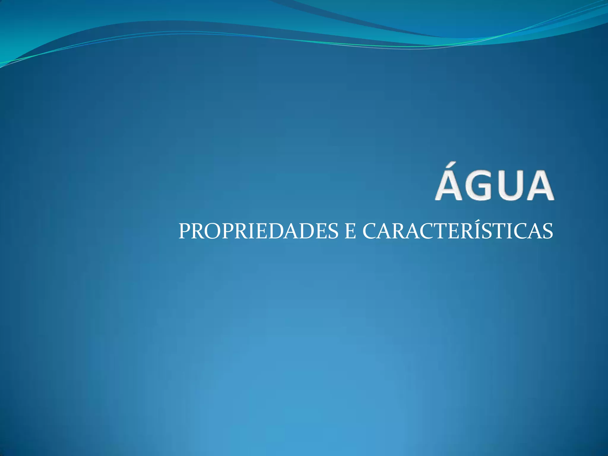 O documento descreve as propriedades e características da água, incluindo sua abundância na Terra, sua composição molecular, sua capacidade de dissolução e participação em reações químicas. Também discute a ionização da água, o pH e sistemas tampão, particularmente o sistema tampão bicarbonato que ajuda a manter o pH do sangue constante.